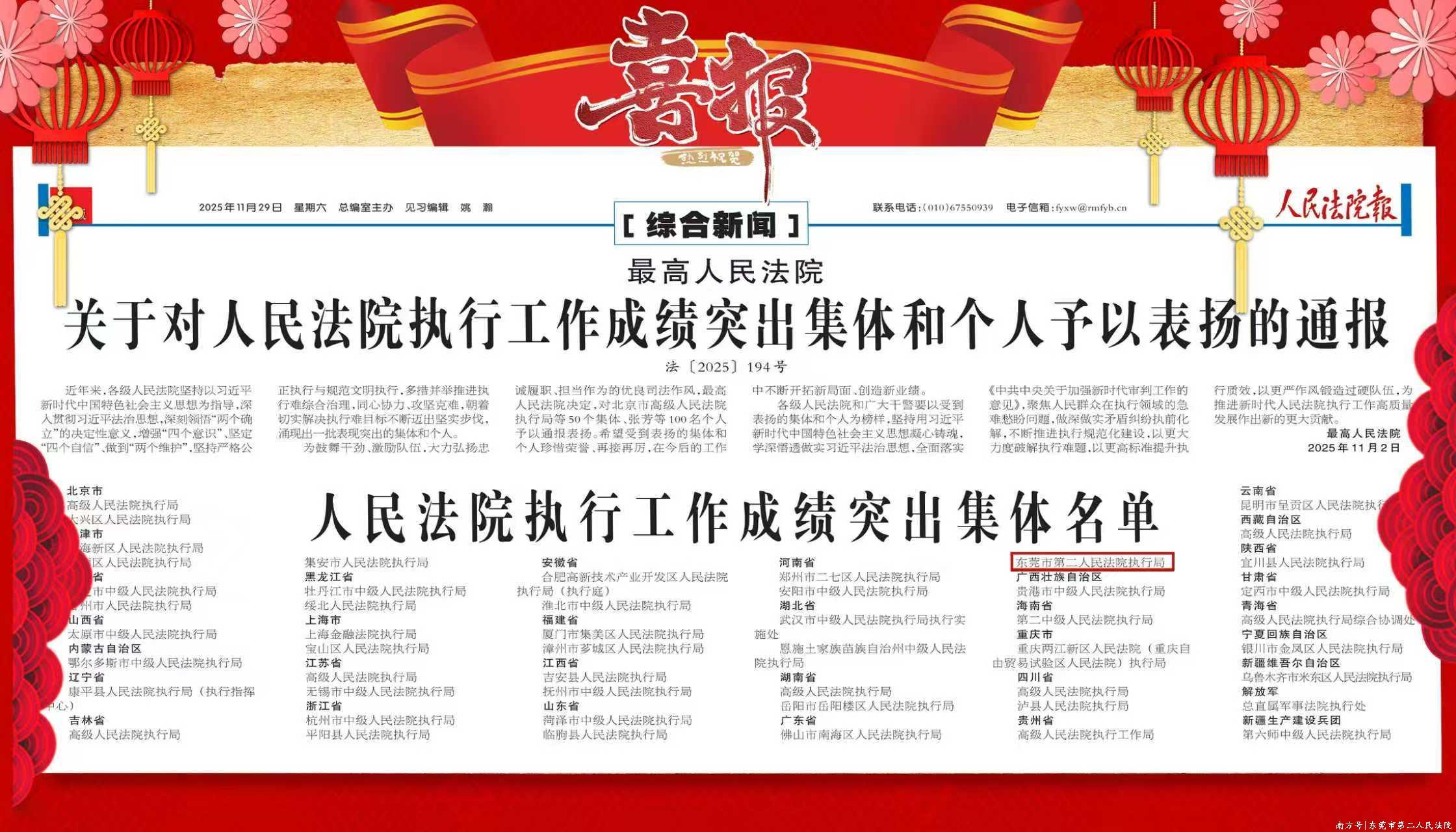 近日股票杠杆配资平台,最高人民法院发布《关于对人民法院执行工作成绩突出集体和个人予以表扬的通报》,对全国法院执行条线 50 个集体、100 名个人予以通报表扬。其中,广东省东莞市第二人民法院执行局获评“人民法院执行工作成绩突出集体”。广东法院仅两家法院执行局获此沉甸甸的“国字号”殊荣。